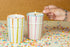 A vibrant duo of hand painted ceramic candles designed to light up any celebratory occasion. Playful, multicolored stripes that add a pop of joy to your decor. Comes as a set of two with matches beautifully packaged together.